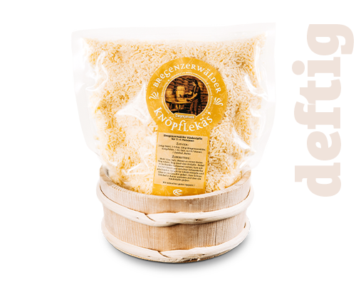 Unsere Käsknöpflemischung wird nach einem gut gehüteten Geheimnis hergestellt und ist die wichtigste Zutat für die Bregenzerwälder Käsknöpfle. Eines können wir verraten: Sie enthält Bergkäse und Rässkäse.